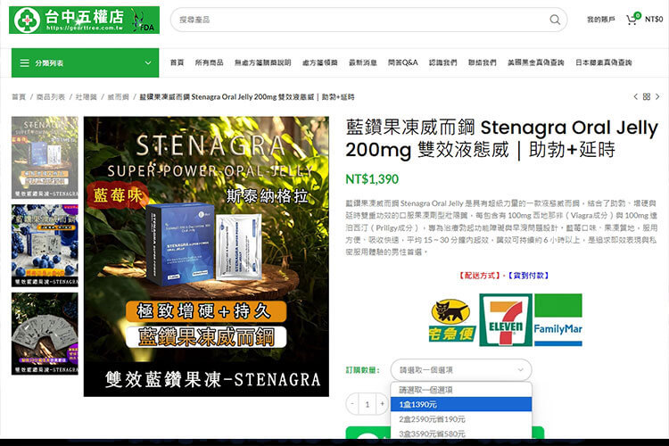 | 產品名稱 | 雙效果凍威而鋼、藍莓威而鋼、液態威而鋼、藍鑽果凍威而鋼 |