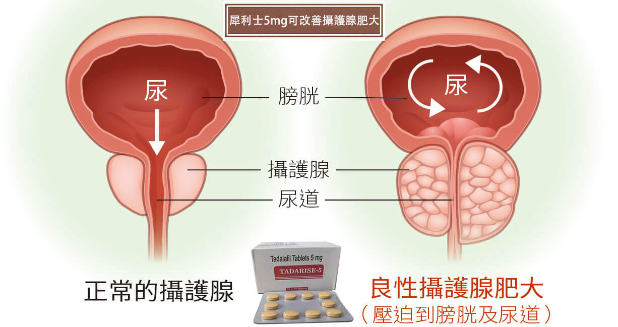 經美國 FDA 核准,犀利士 5mg 不僅能治療陽痿,同時改善攝護腺肥大(BPH)症狀,如頻尿、夜尿等問題。