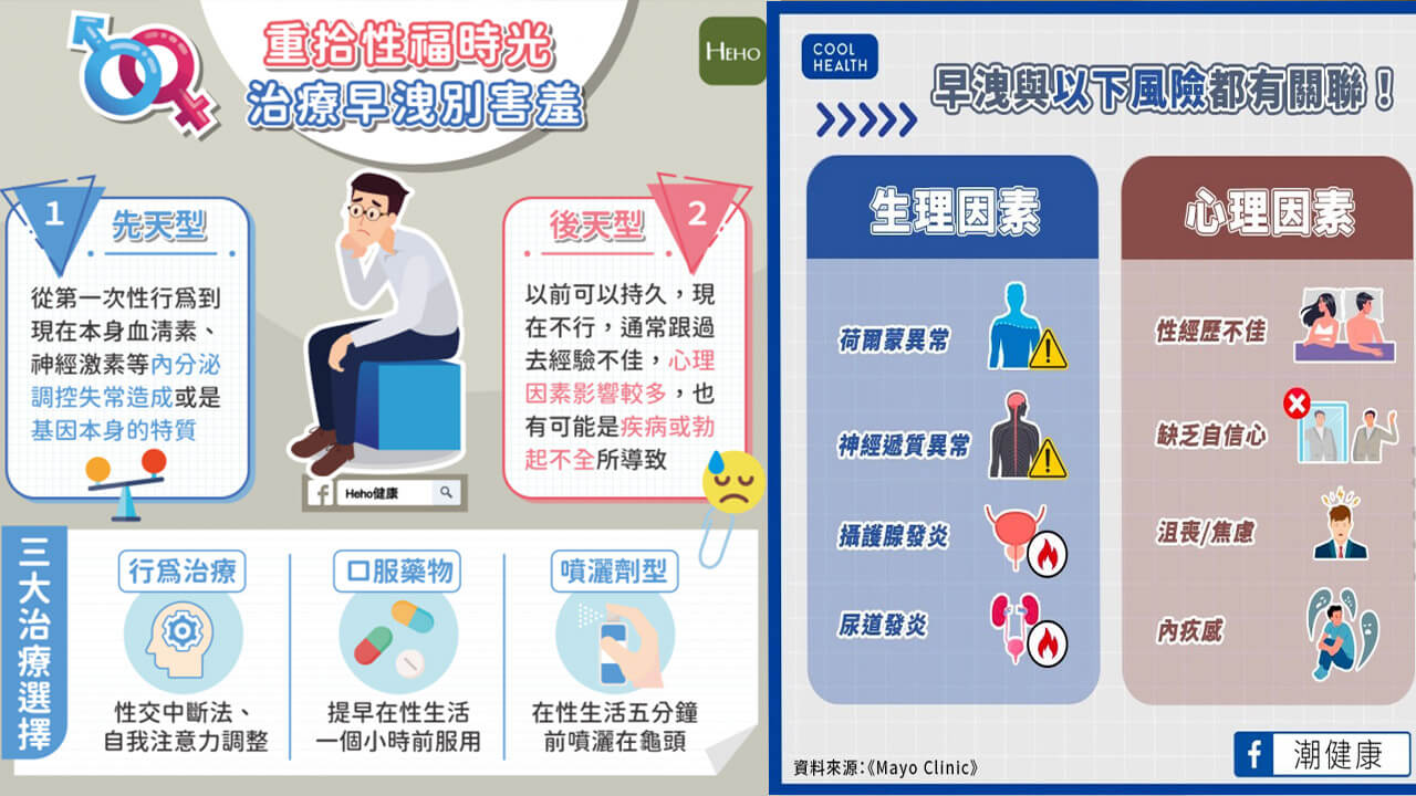 1. 原發性早洩:指從第一次性行為起,幾乎每次都出現早洩,通常與先天性神經機制相關。
