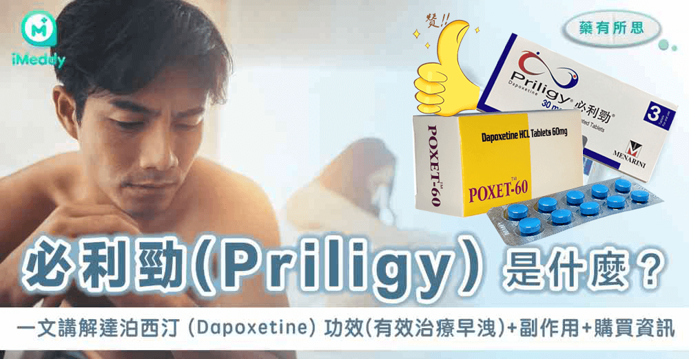 必利勁(Priligy),學名 達泊西汀(Dapoxetine),是全球首款也是目前唯一獲得 台灣與多國藥品監管單位批准 用於治療 早洩(Premature Ejaculation, PE) 的專用處方藥。