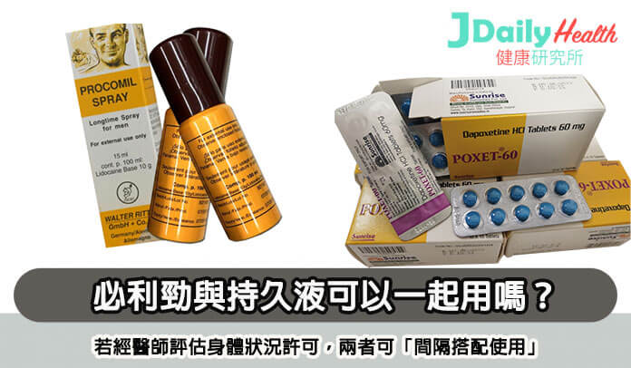 理論上,必利勁(Priligy)與持久液(延時噴霧)是可以一起使用的,但必須遵守正確方法與劑量原則。