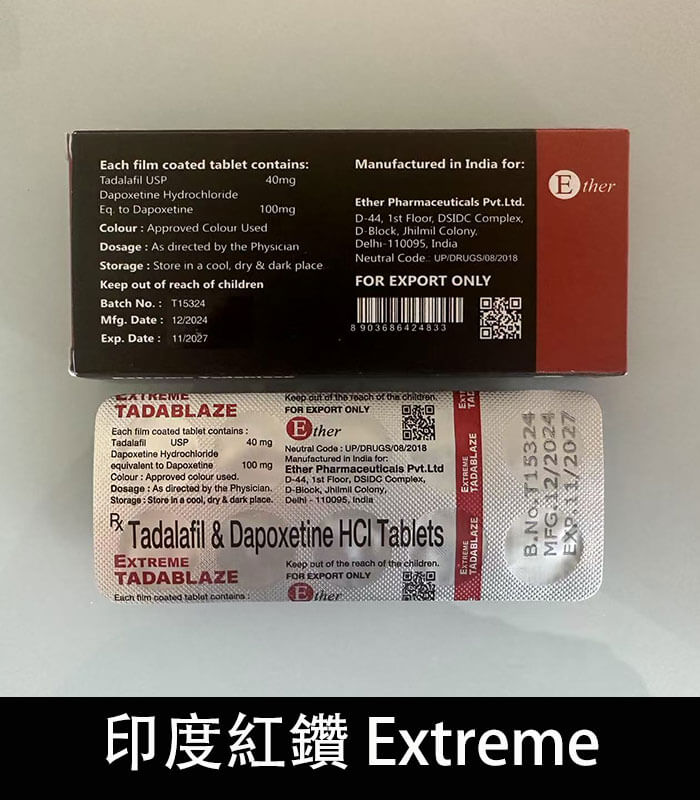 印度紅鑽 Extreme Tadablast 是由印度知名製藥企業 ETHER 醫爾藥廠 出品,專為男性打造的雙效型壯陽藥。
