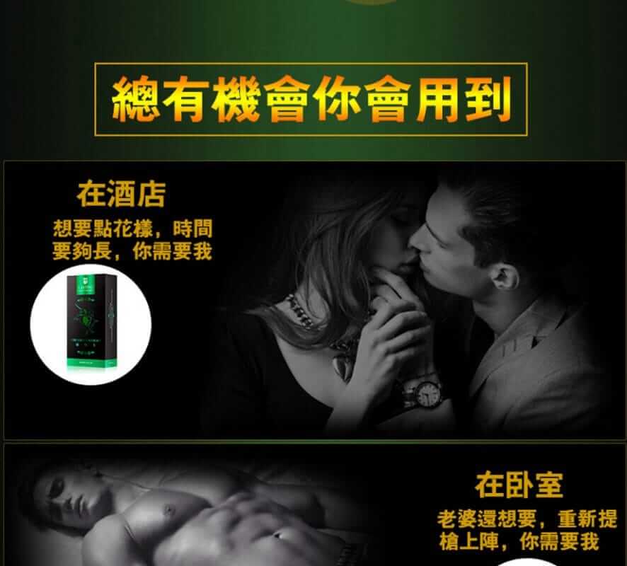 【主要成分】瑪咖、銀羊藿、肉蓯蓉、羊起石、丁香、苯紮臭銨0.1%等。