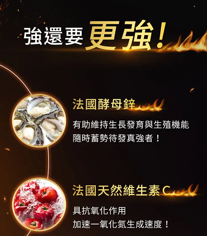 主要成分: L-精氨酸、一氧化氮促進劑、維生素C、維生素E