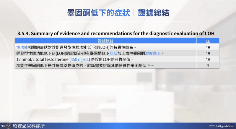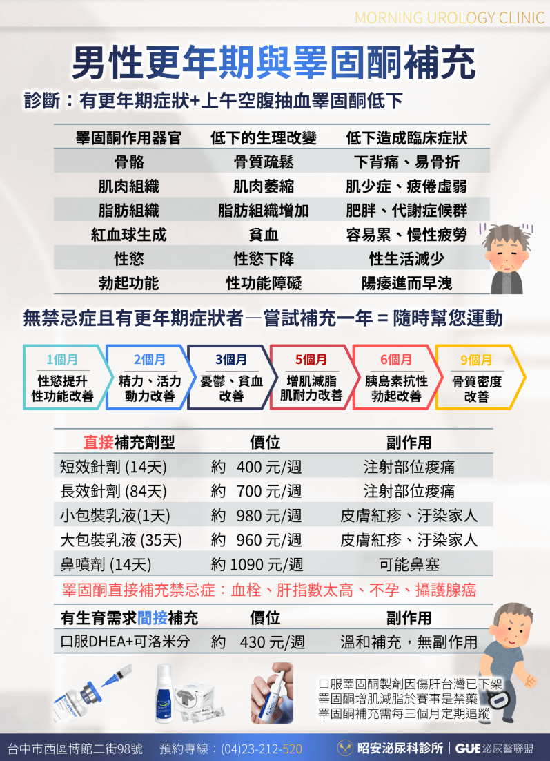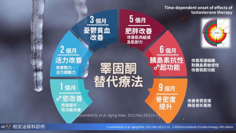 適用於男性因睪酮不足所引起的各種症狀,包括: