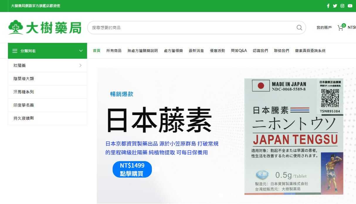 雖然露天購物是一個便利的電子商務平台,但我們還是需要謹慎。對於低價和途徑不明的商品要提高警惕,避免落入購物陷阱。只有這樣,才能保護自己的利益,我們需要提高警惕,並謹慎選擇商品和購買途徑,消費者才能真正享受到愉快的購物體驗。購買四代日本藤素請認準大樹藥局: