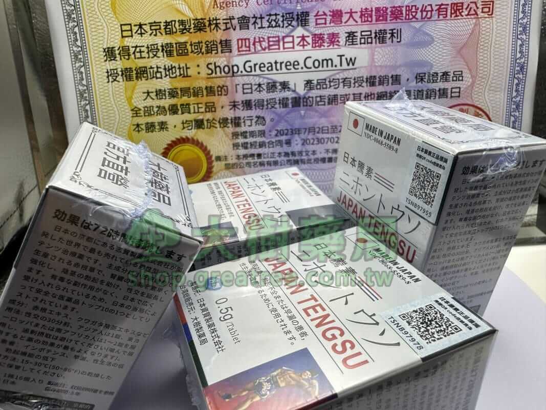 關於代購:這裡大樹藥局建議是請身邊的親友代購,並且需要注意的是代購藤素的數量不要超過3盒,因為台灣海關規定藤素進口是只限制3盒的。如果一次性購買太多,郵寄回國的途中可能會被海關扣貨哦