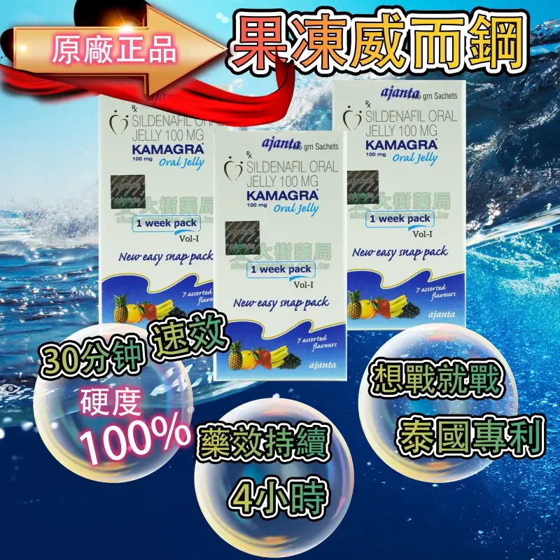 液態果凍威而鋼Ajanta Kamagra Oral Jelly 100mg 是世界上第一個研究出的液體狀威而鋼,台灣多數叫它果凍威而鋼,由於有七種水果味,及生效時間比藍色小丸子快速,很多人也叫它為果凍威而鋼,但也有分單效和雙效果凍威而鋼的唷!
