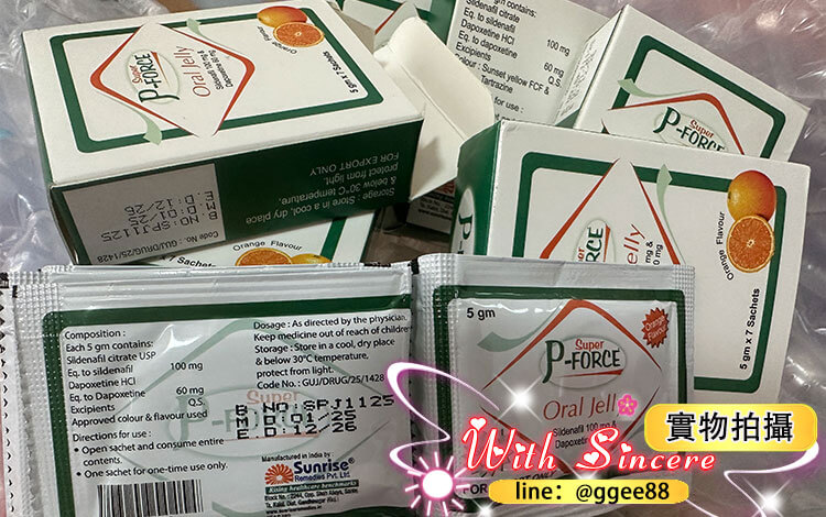 Super P-Force Oral Jelly果凍威而鋼的主要活性成分是西地那非100mg和達泊西丁60mg,能增加陰莖的血液循環,刺激男性的自然性喚起與增長勃起與射精耐久時間,可以幫助使用者獲取長時間的勃起和強大的性高潮。