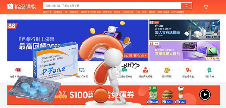蝦皮嚴禁處方藥販售 —— 包含威而鋼、犀利士、樂威壯、必利吉等藥物,都不能合法上架。